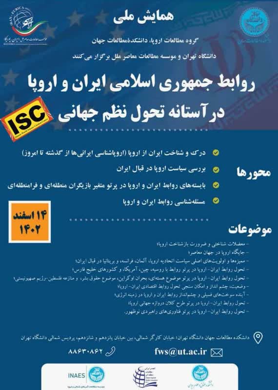 این همایش از سوی گروه مطالعات اروپای دانشکده مطالعات جهان دانشگاه تهران با همکاری مؤسسه ایران-یوریکا به صورت حضوری و مجازی برگزار می شود.