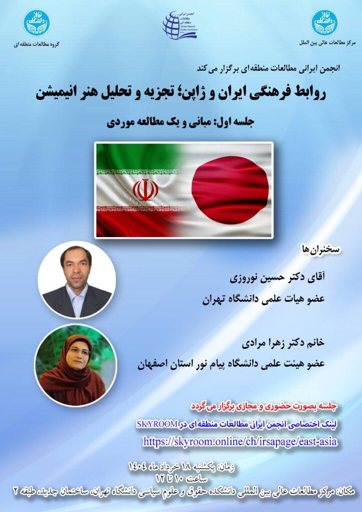 انجمن ایرانی مطالعات منطقه ای نشست علمی با عنوان «روابط فرهنگی ایران و ژاپن؛ تجزیه و تحلیل هنر انیمیشین» را برگزار می کند.